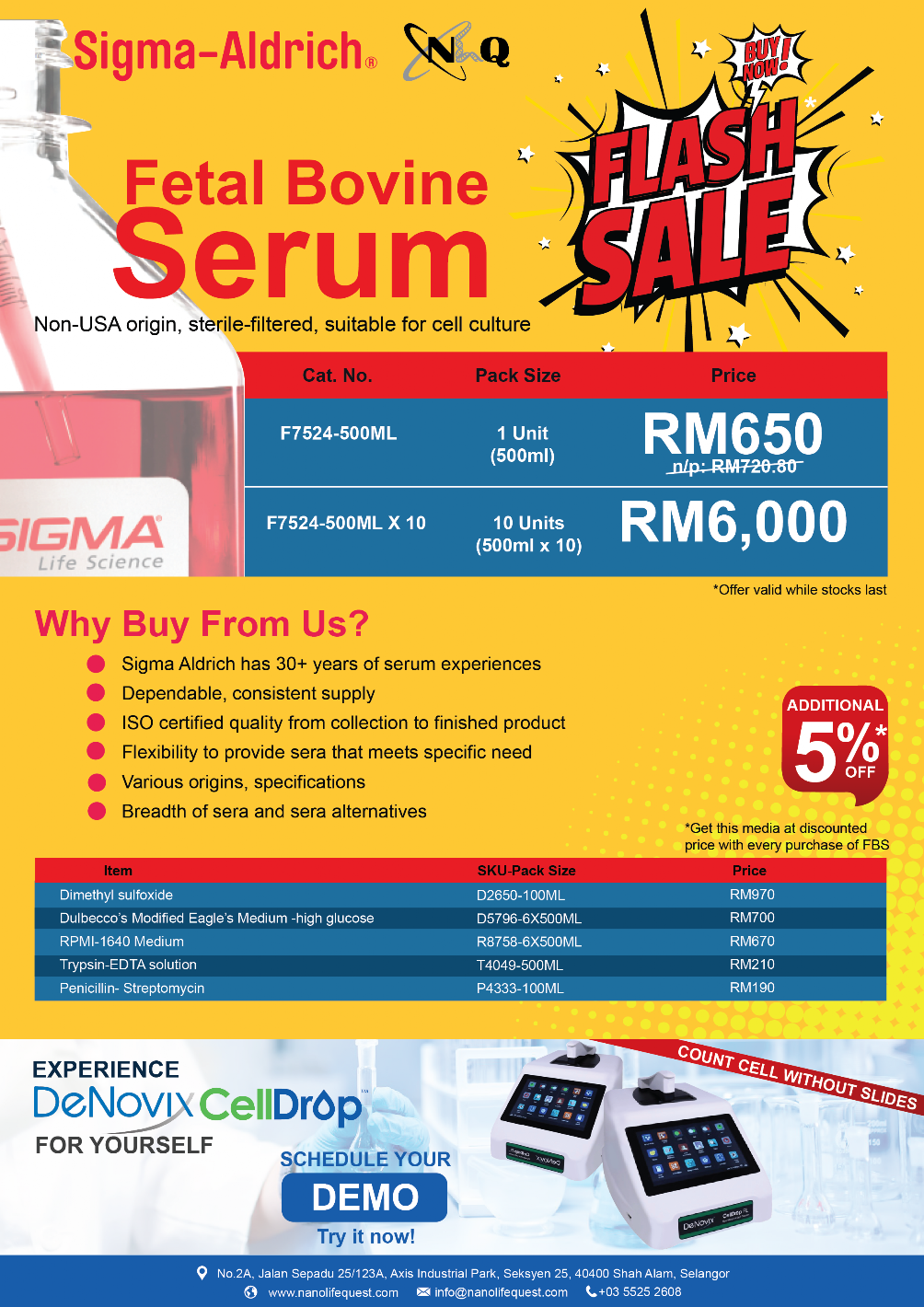 Fetal Bovine Serum Special Offer F7524-500mL - Nano Life Quest Sdn Bhd